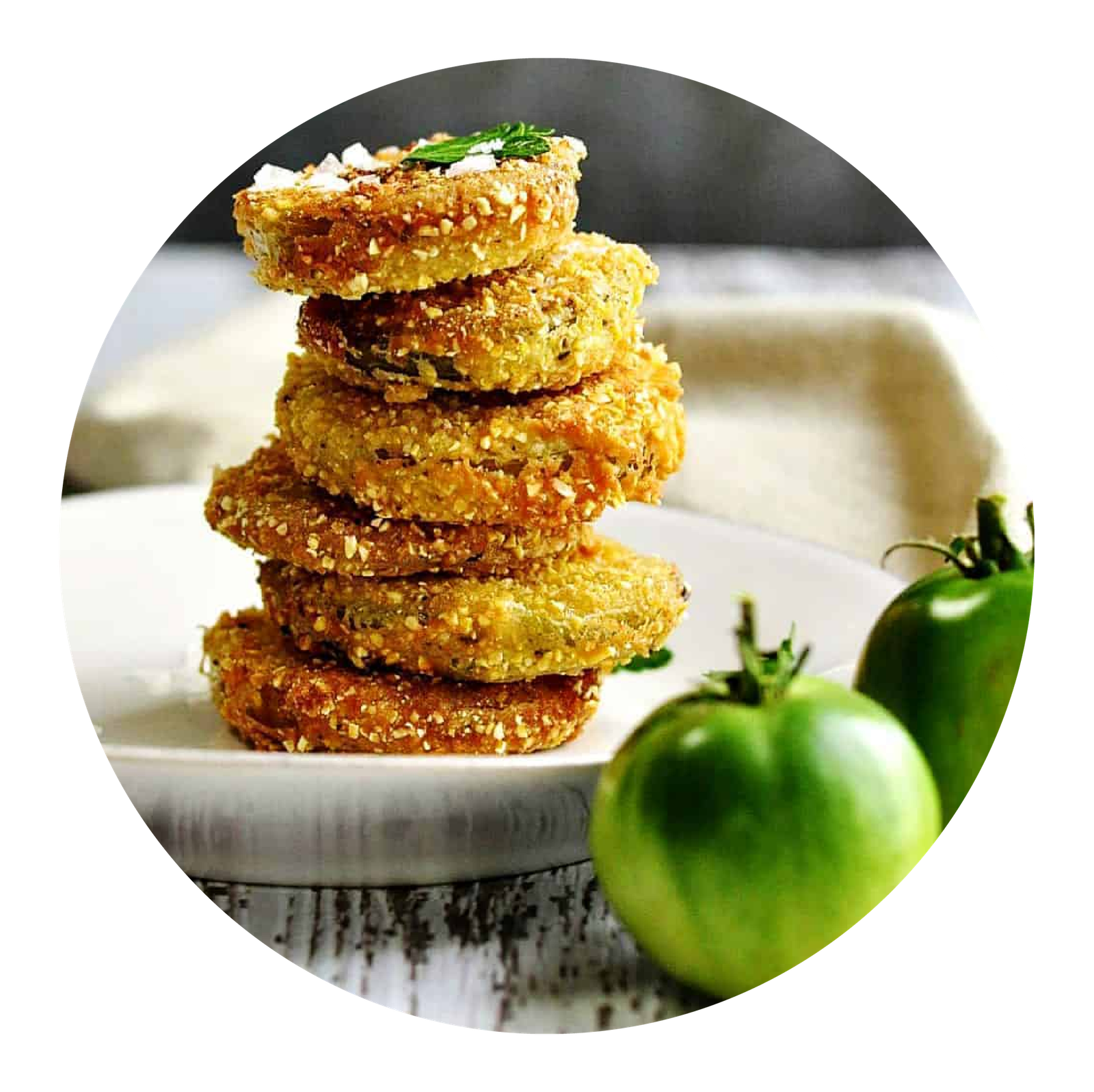 GREEN TOMATOES FRIED GOLDEN BROWN AND SERVED WITH OUR WHITE WINE CREOLE SAUCE